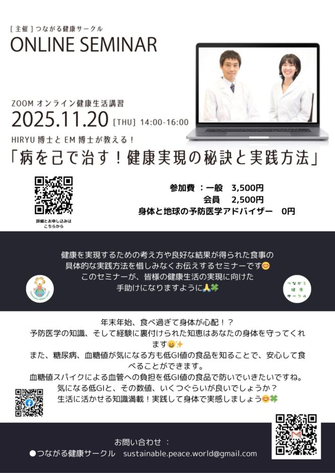 【オンライン】病を己で治す!色々食べちゃう年末年始の前に知りたい!低GI値食品