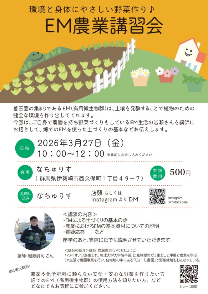 【群馬】環境と身体にやさしい野菜作り♪EM農業講習会