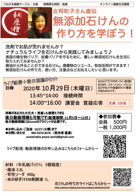 【オンライン配信】生活・食育講習 10月「無添加石けん作り」