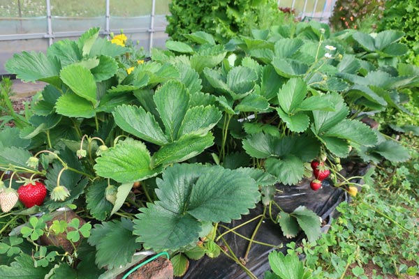 これまで本気でイチゴをつくったことがなかった私ですが、昨年の秋ホームセンターで販売されていたたくさんの種類のイチゴの苗の中に「とちおとめ」の苗があり、つい衝動買いをしてしまいました。というのはちょっと難しい話になりますが、「とちおとめ」は種苗法に基づいて品種登録され、厳しく管理されているため、一般的には流通していませんでした。これは作物のブランド価値を守るための権利で当然のことなのですが、数年前にその権利が切れてやっと一般にも流通するようになりました。それで、ホームセンターで「とちおとめ」の苗を見つけた時に衝動買いをしてしまったのです。私はイチゴ栽培に詳しくはありませんし、販売するわけではないので無理のないようにとりあえず10株だけ購入しました。ということで、柴田流の旬のイチゴ栽培を紹介しますね。もちろんほかの野菜同様に化学肥料や農薬を使わない、EMさん大活躍の栽培方法です。 まず、Part1 第11回EM柴田農園直伝 EM生ごみたい肥づくりで紹介した生ごみを使った土づくりの後、11月30日に「とちおとめ」の苗を植えました。イチゴは寒さに比較的強い野菜ですが、真冬の寒さが厳しい時期には休眠してしまいます。枯れた葉は防寒のため取り除かないで、さらに草マルチなどで根元を保護します。それ以外はたまに水やり(もちろん、ただの水ではありません!EM活性液を薄めた水です!!)をするくらいで年明け3月末までは自然にお任せです。 4月に入り、新芽が伸びてきたら枯れた葉を取り除き、冬に出たランナーや花芽もイチゴの体力を保つためすべて切り取ります。 イチゴは乾燥が大の苦手なので、表面の土が乾いたらEM活性液の薄めた水をたっぷりかけます。 また、新たな試みとして、病害虫を抑える働きや受粉を助けるハチなどを呼ぶ働きを期待してコンパニオンプランツのマリーゴールドとカモミールをイチゴの周りに植えてみました。