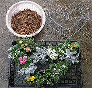 使用する苗は、春を呼ぶやさしい色合いのものを選んでみましょう。見た目よりリースの深さはあり、苗が落ちる心配はありません。念のため、透明な「天蚕糸(てぐす)」で、リース全体をぐるぐると巻くとさらに良いでしょう。