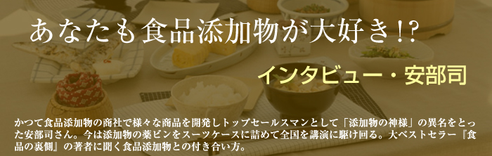 安部 そうなんです。消費者が求めるから添加物を使っているという部分も大いにあるんです。あるリサーチ会社が、消費者の購買動機、つまり何を基準にして物を買うかを調べたところ、上位6位に、安い、簡単、便利、きれい、おいしい、が全部入りました。次に入るのは、日付です。こういった基準で物を買う以上、添加物は絶対に減らない。だから、年々増えているんです。農薬なんかも減るわけがないでしょう。