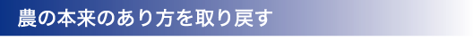 それは例えば、環境を守るために生産性を無視するということではなく、有機農業の取り組みは、環境、食、暮らしを豊かにし、同時に生産力向上を実現していく農業本来の王道を歩もうとしています。 これは、固定的な規格基準論への対応ではなく、取り組みと時間の積み重ねの中から、安定的でさらに活力のある生産体系を拓き拡げいこうとする営みです。このようなことから、自然との結合から離れ、外からの資材導入に依存している近代化慣行農業とは、技術路線において根本的に異なります。実現させようとしています。