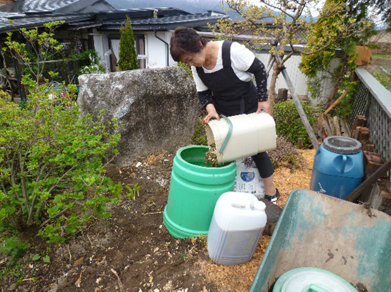畜糞を使わない場合は、枯れ草などをEM堆肥にして前面に漉き込む。 - 生ごみ、花がらもEM堆肥にする。