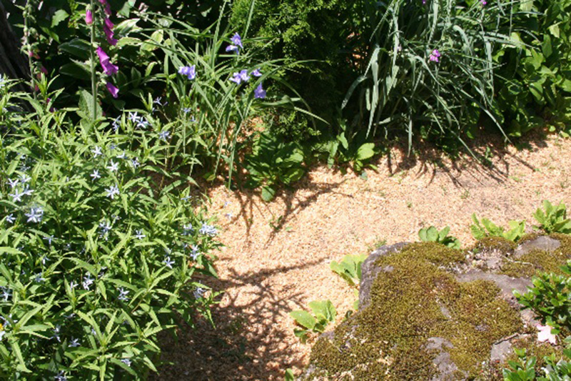 歩くと土が固くなって雨水が溜まりやすくなる影響を防ぐ効果も。